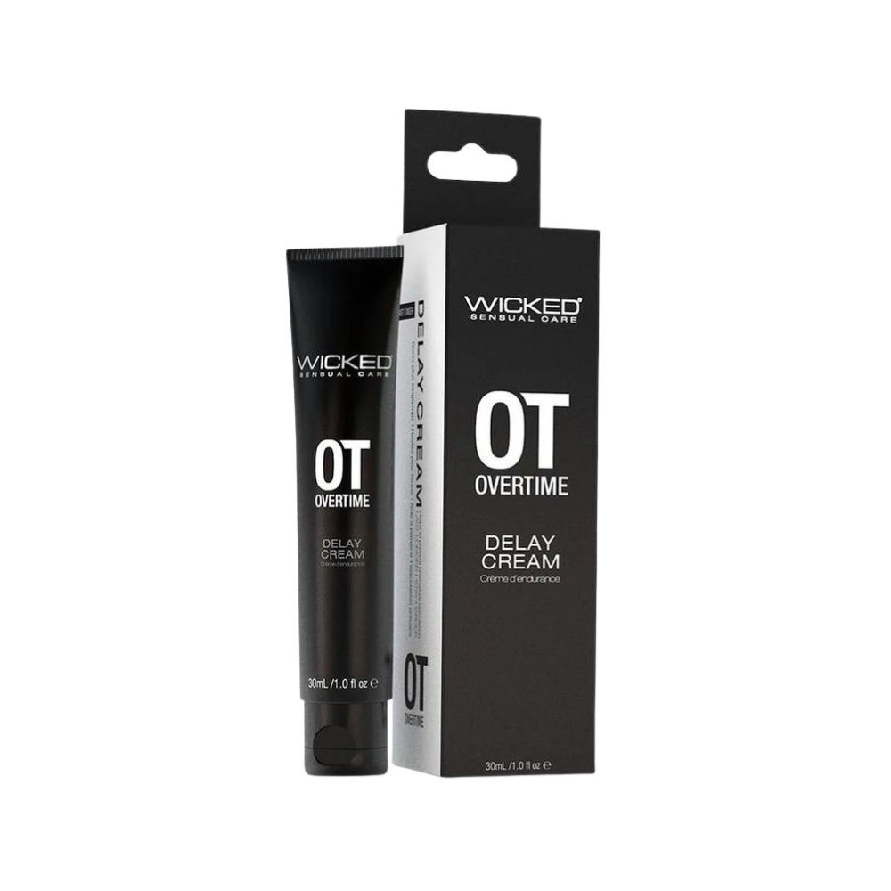 Wicked OverTime is a fast-acting, no-prescription delay cream formulated to help you last longer and enjoy more control during intimate moments. With 5% benzocaine, this gentle desensitizing cream slightly reduces sensation on the penis, helping ease overstimulation so you can stay present, confident, and connected for longer.