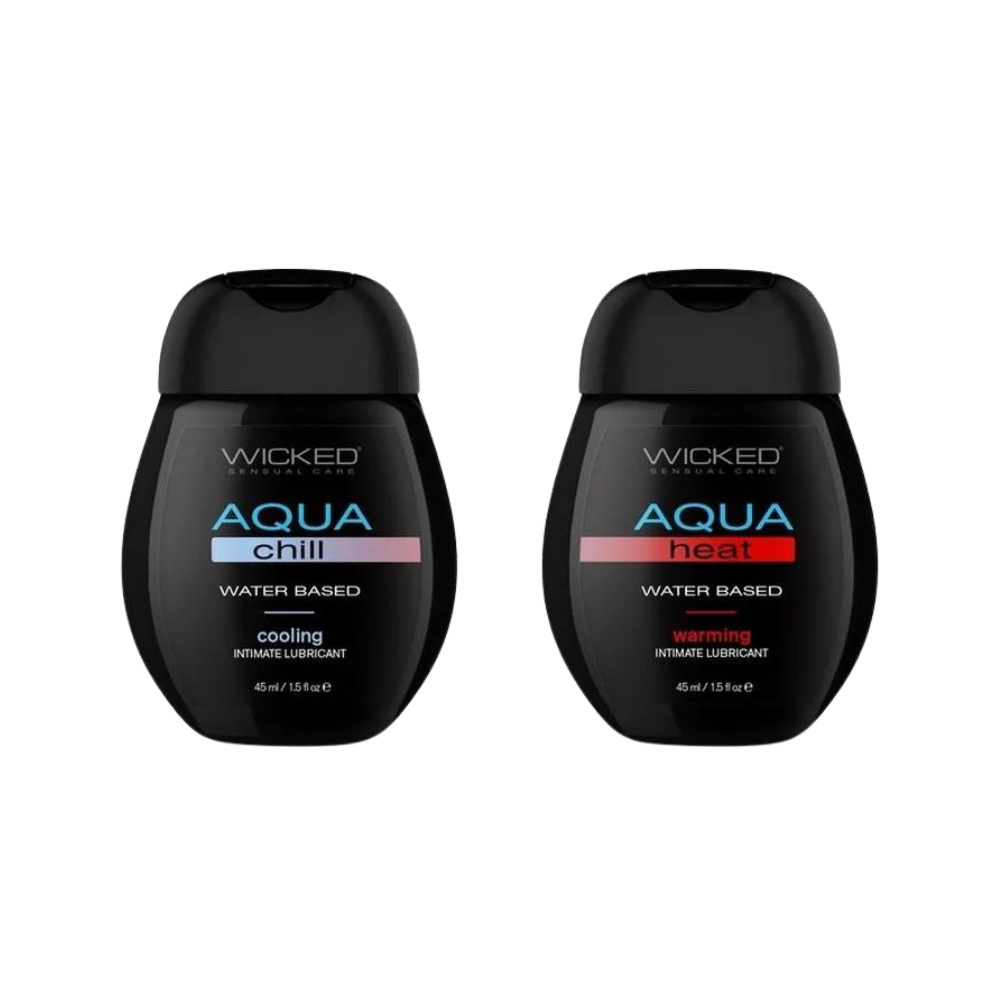 Turn up the pleasure with the Wicked Sensual Sensations Kit, a duo of deluxe water-based lubricants designed to heighten arousal, increase stimulation, and enhance every intimate moment. Featuring Aqua Chill (1.5 oz) for invigorating cooling and Aqua Heat (1.5 oz) for seductive warmth, this kit gives you the best of both worlds to explore solo or with a partner.